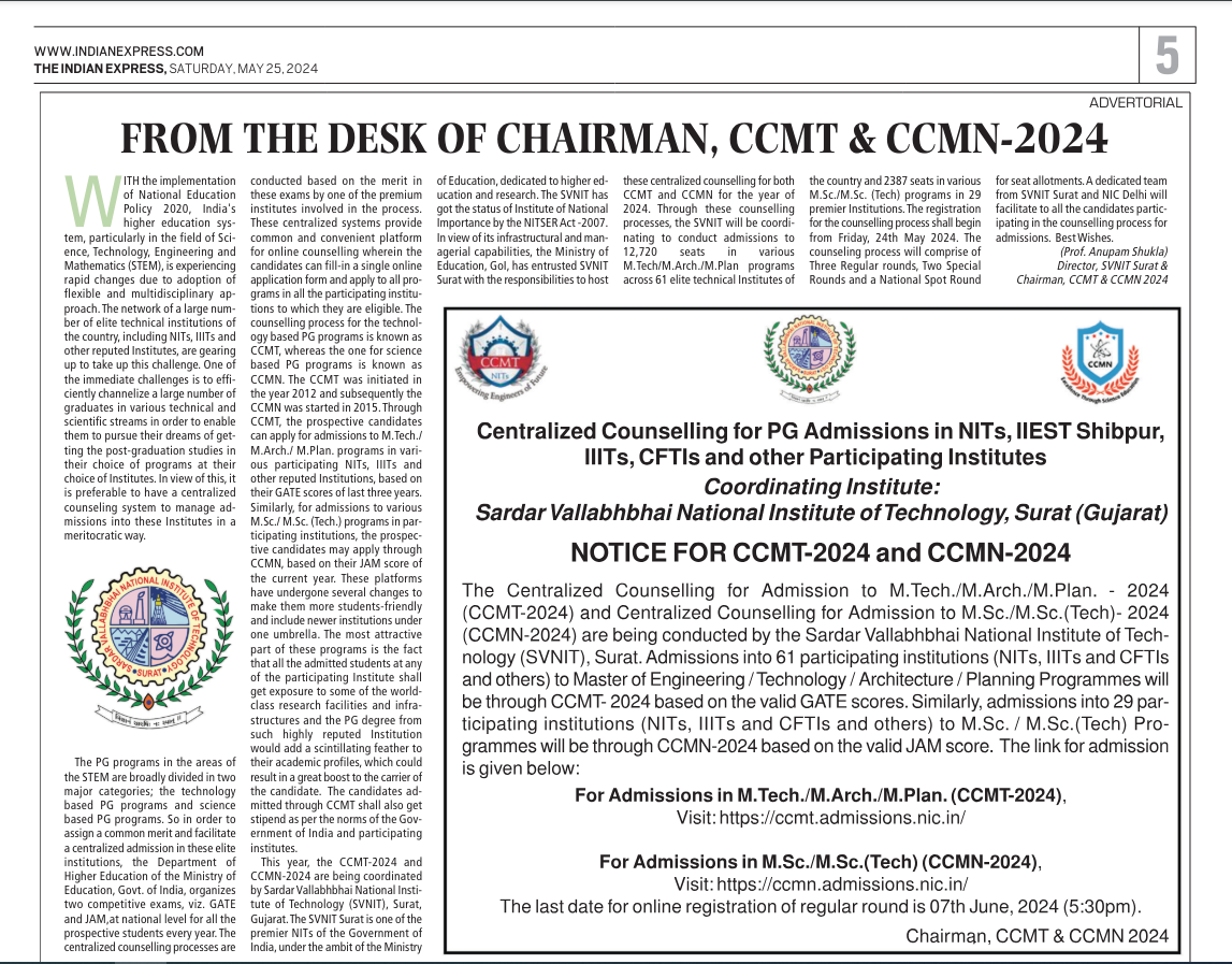 FROM THE DESK OF CHAIRMAN, CCMT & CCMN - 2024